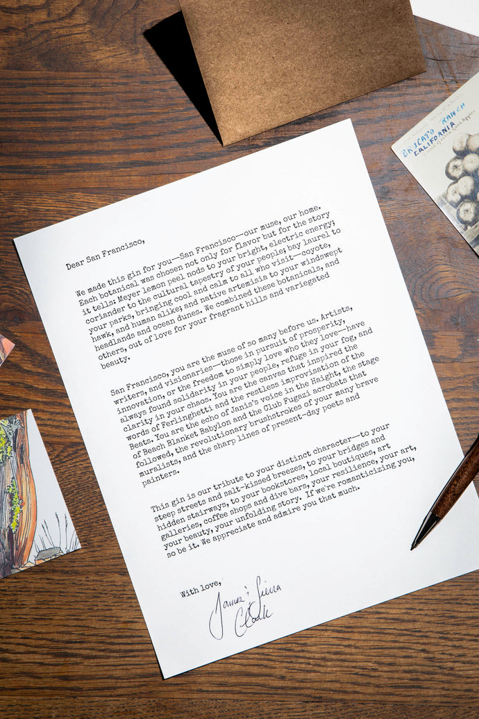 This gin is our tribute to your distinct character—to your steep streets and salt-kissed breezes, to your bridges and hidden stairways, to your bookstores, local boutiques, art galleries, coffee shops and dive bars, your resilience, your art, your beauty, your unfolding story. If we're romanticizing you, so be it. We appreciate and admire you that much.